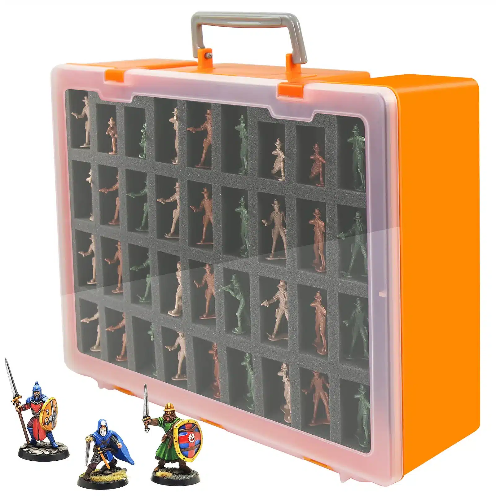 Chaque étage comprend 32 cases de 5.2×2.8×3.1cm et 4 cases de 4.1×2.8×3.1cm, adaptées à différents formats de miniatures, et une couche de mousse pleine entre les étages empêche les contacts et protège la peinture.