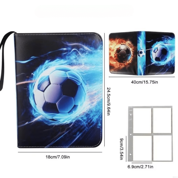 La couverture imprimée ballon de foot avec aura énergétique donne tout de suite le ton et plonge dans l’univers du football. Le visuel est dynamique et motivant, parfait pour donner envie de remplir l’album au fil des échanges et des ouvertures de pochettes. La surface lisse et imperméable protège le classeur des petites éclaboussures et des manipulations répétées.