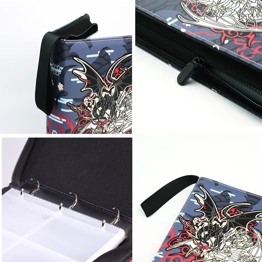 La couverture imprimée Dragons blanc et noir YGO offre un visuel fort qui plaît immédiatement aux fans de l’univers. Le design attire l’œil et donne envie de remplir l’album dès les premières cartes. La surface lisse et imperméable protège le classeur des petites maladresses du quotidien.