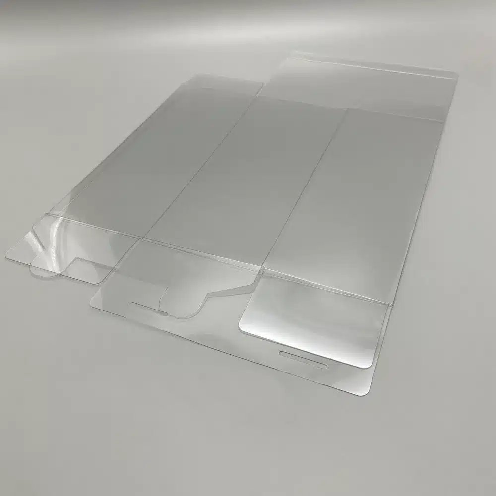 Livré à plat, l’étui se déplie sans effort et se monte en quelques gestes. Un film protecteur sur la surface préserve la transparence et la brillance du plastique jusqu’à l’exposition, assurant un rendu clair et brillant. Le matériau est léger, transparent et ne déforme pas la boîte d’origine.