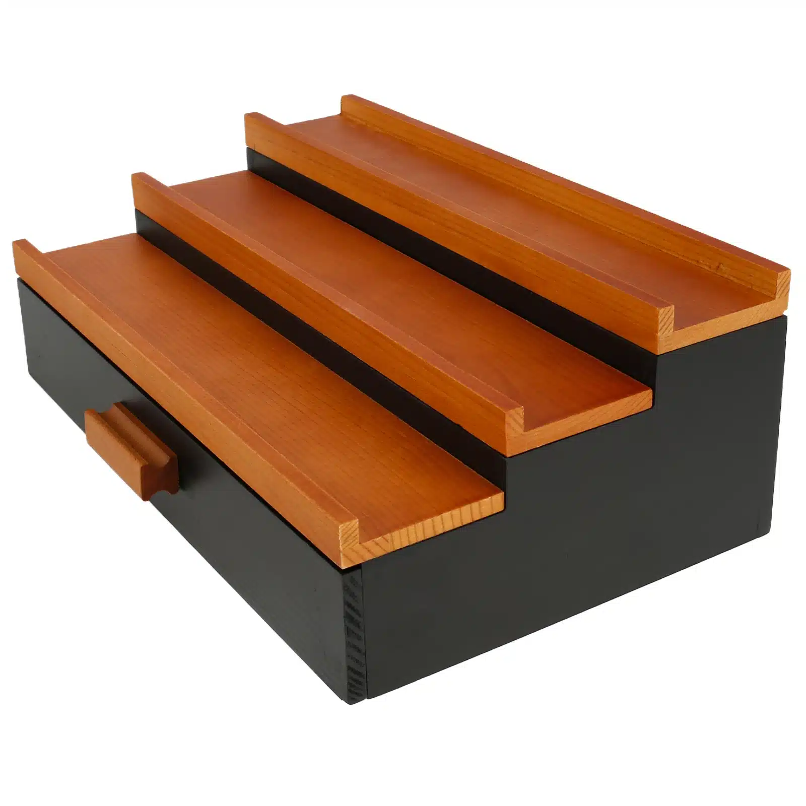 Meuble étagères en bois à 3 niveaux pour stocker et exposer vos flacons de parfum sans encombrer la salle de bain ni la coiffeuse.