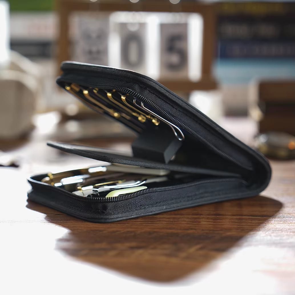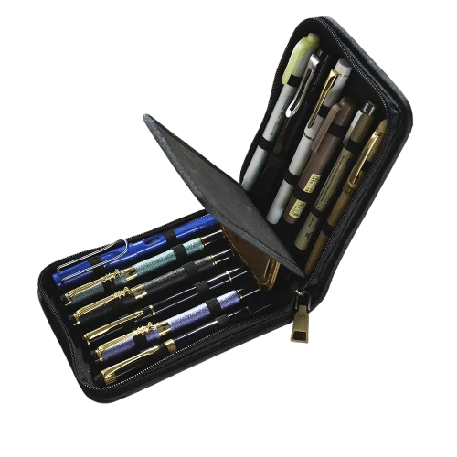 Que ce soit pour vos stylos de collection, vos plumes favorites ou simplement pour un usage professionnel, cet étui garde chaque pièce à portée de main et bien protégée.