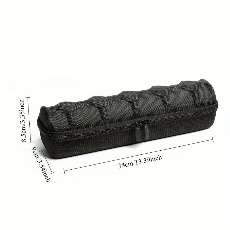 Dimensions 34×9×8.5cm qui offrent assez de place sans devenir encombrant. Sa forme cylindrique permet de le glisser facilement dans une valise ou un sac de voyage, sans perte d’espace.