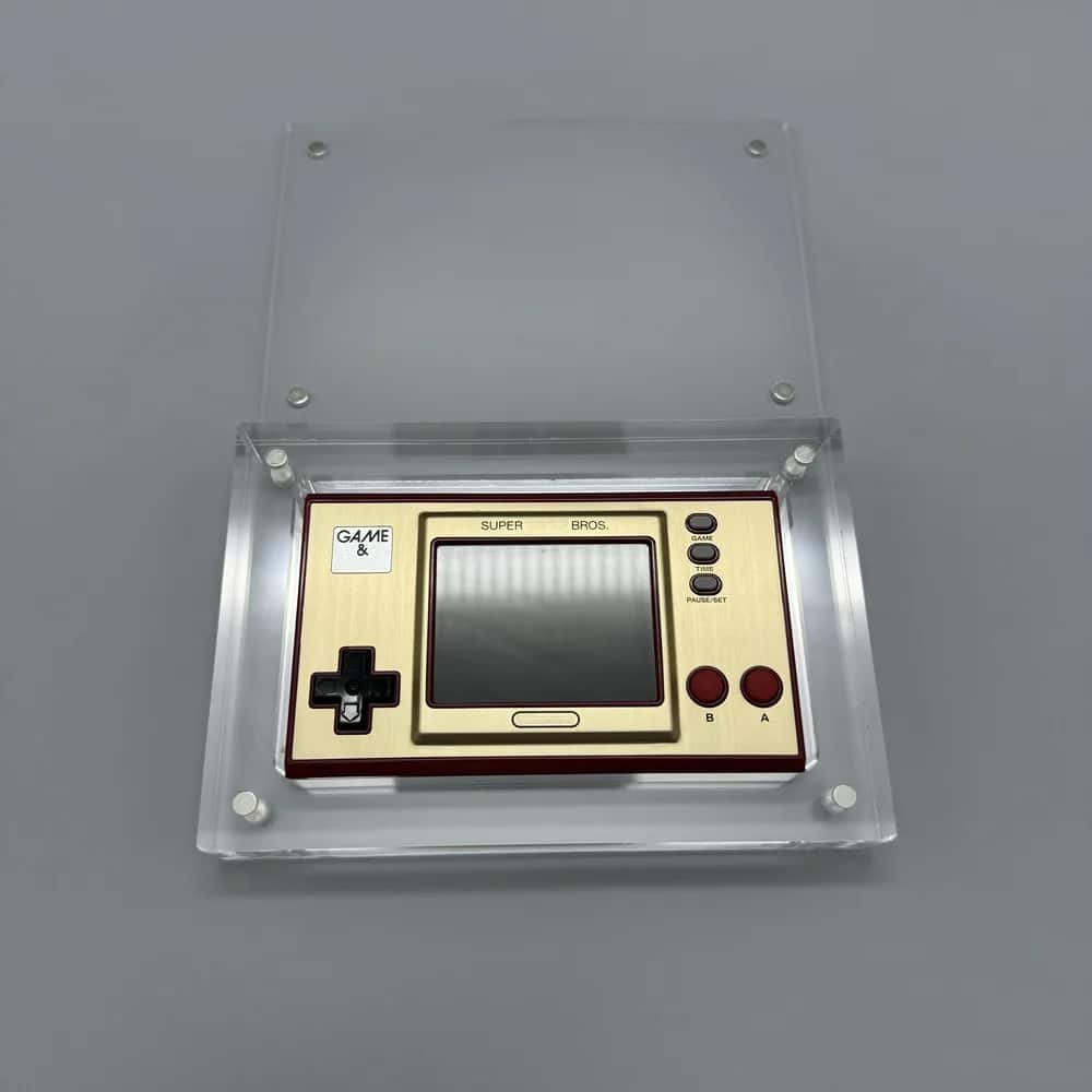 Boitier vitrine aimanté 100% acrylique transparent qui protège et met en valeur votre console portable Nintendo Game & Watch édition spéciale 35e anniversaire.
