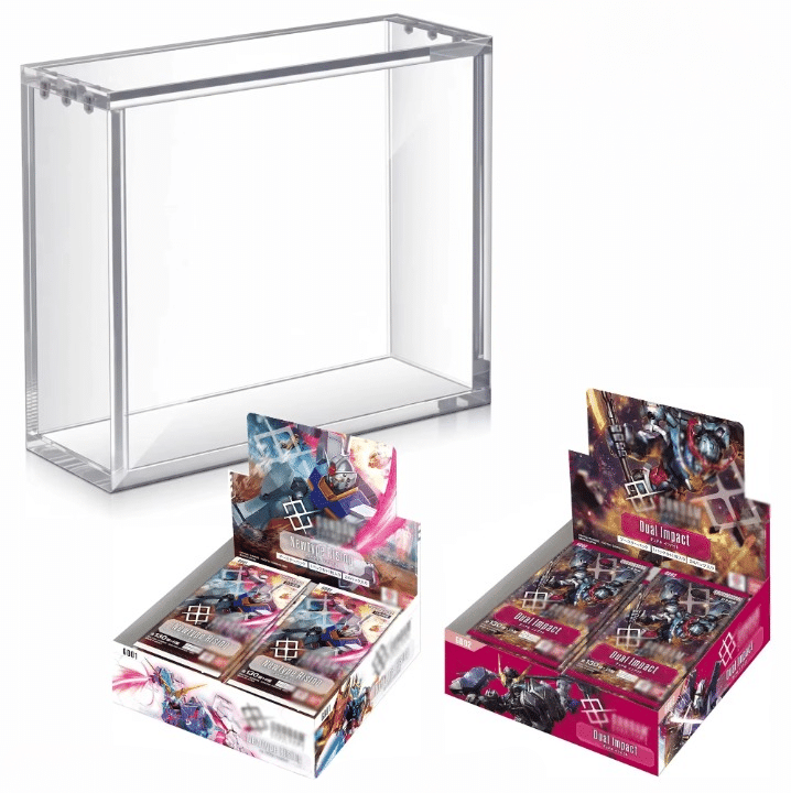 Vitrine de protection en acrylique conçue pour les display japonais Gundam TCG GD01, GD02 et suivantes, ce boîtier respecte les dimensions exactes des éditions japonaises pour un maintien propre et sans jeu.