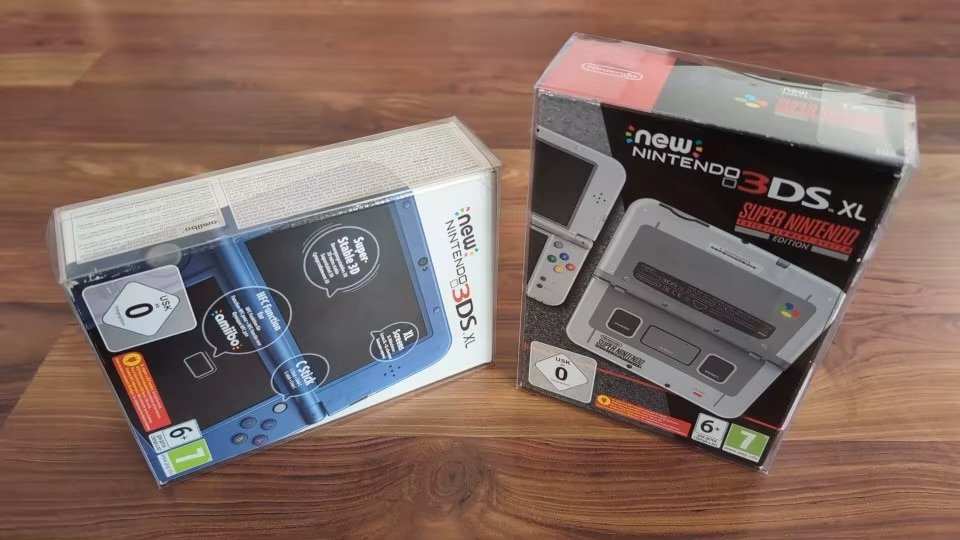 Protégez l’emballage de votre New 3DS XL tout en gardant le visuel bien visible, pour une présentation propre sur étagère.