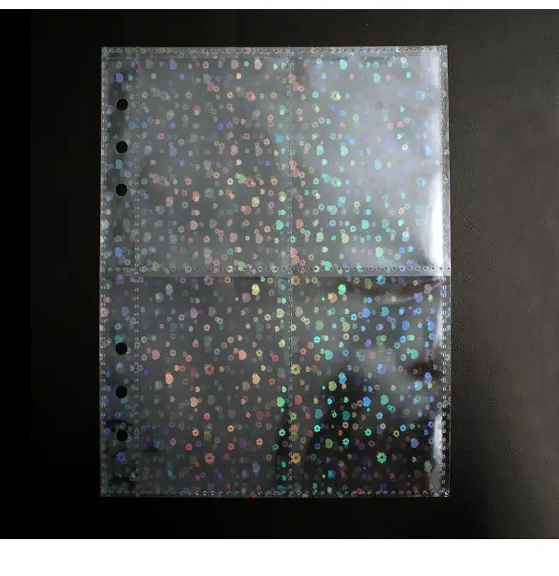 L’insertion des cartes par le haut facilite le rangement et limite les manipulations. Les cartes restent bien en place lors des déplacements et des consultations fréquentes. Le modèle transparent est équipé de 3 trous compatibles avec un classeur 3 anneaux standard. Le modèle foil dispose de 6 trous, ce qui offre plus de liberté d’archivage selon votre classeur.