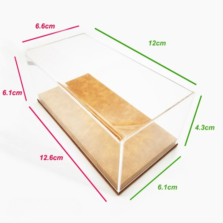 Le couvercle s’emboîte sur un socle doublé en cuir PU qui offre une tenue stable et un rendu très soigné sur étagère, bureau ou vitrine murale.