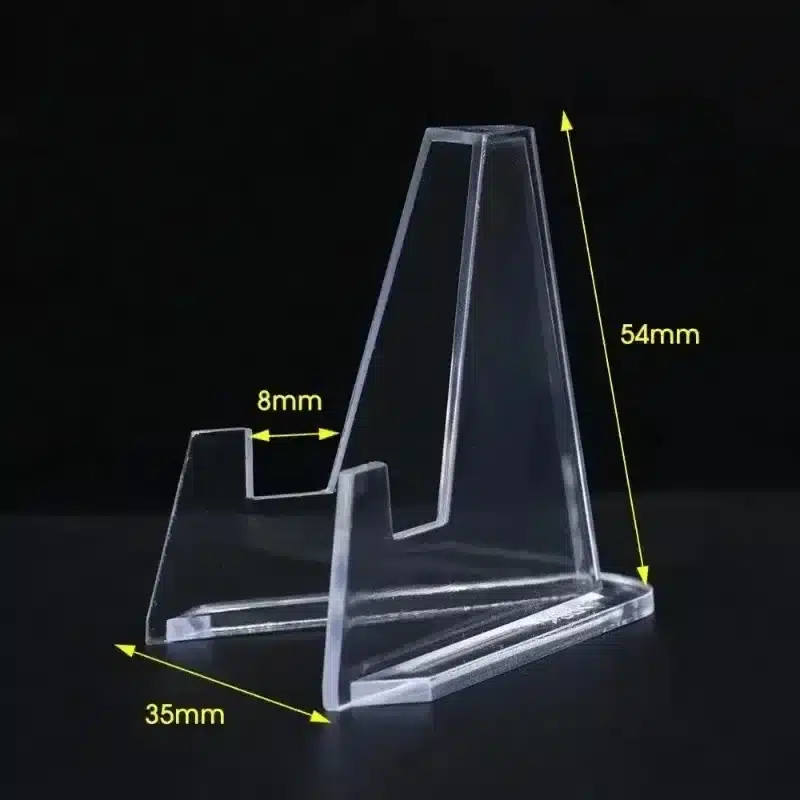 Le format compact est pensé pour optimiser l’espace sans sacrifier la visibilité. Chaque présentoir monnaie mesure 54mm de hauteur, avec un entre-axe de 35mm et une zone d’insertion de 8mm, ce qui lui permet d’accueillir des objets fins tout en les maintenant bien droits.