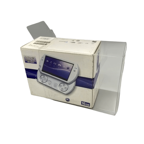 La PSP GO clear case est livrée à plat pour un transport simple, puis se déplie facilement avant usage, sans outil. Sur la surface, un film protecteur est présent pour préserver la transparence et la brillance pendant la manipulation ; il suffit de le retirer au moment de l’exposition pour retrouver un visuel net.