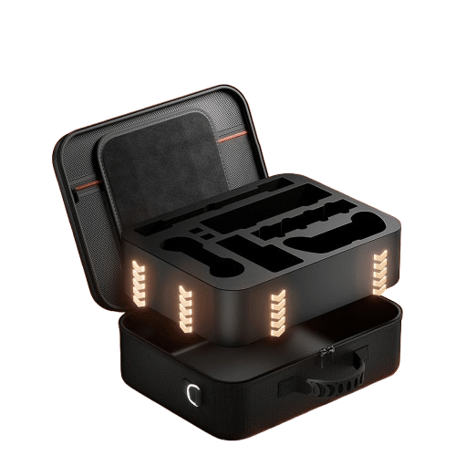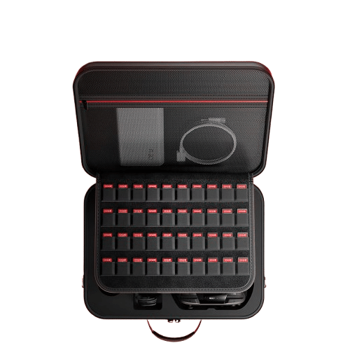 Le double zip latéral assure une ouverture large et rapide, tandis que le volet rabattable intègre 40 emplacements pour cartes de jeu SD afin de garder toute votre ludothèque à portée de main. À cela s’ajoute une poche intérieure zippée pour les petits accessoires ou câbles.