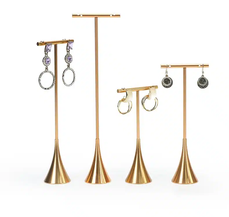 Lot de 4 supports métalliques en forme de T pour suspendre et organiser vos boucles d’oreilles avec style.
