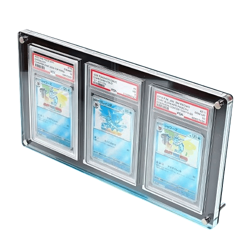 Le support carte gradée offre un affichage aligné pour un trio de cartes phares, parfait pour une série, un set ou trois pièces coup de cœur.