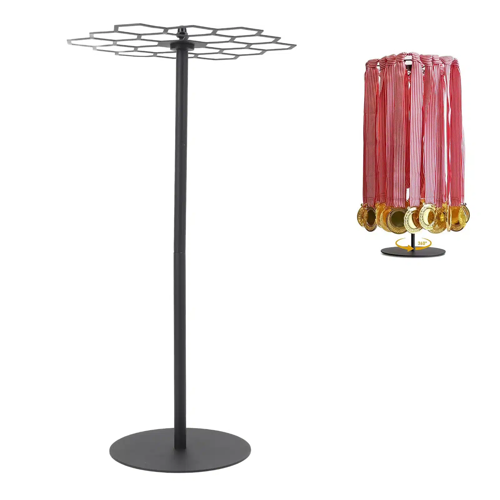 La structure en métal noir offre une résistance durable et une présentation soignée sur bureau, étagère ou dans une vitrine ; le support pour medailles pendantes regroupe vos récompenses au même endroit.